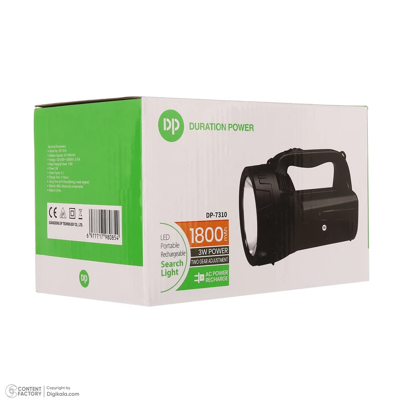 نورافکن دستی DP مدل 7310 یک گزینه کارآمد و قدرتمند برای افرادی است که به روشنایی مطمئن در شرایط مختلف نیاز دارند. این محصول با طراحی کمحجم و بدنه مقاوم از جنس پلاستیک ABS، انتخابی مناسب برای فعالیتهایی مانند کمپینگ، سفرهای شبانه، کوهنوردی و حتی استفاده در شرایط اضطراری خانگی به شمار میآید. وزن حدود ۴۵۰ گرم و ابعاد جمعوجور آن، حمل و استفاده را بسیار آسان کرده است. این نورافکن به لامپ LED مهتابی با توان ۳ وات مجهز است و امکان نوردهی در دو حالت کمنور و پرنور را فراهم میکند. همین ویژگی باعث میشود کاربر بتواند بسته به شرایط، شدت روشنایی را تنظیم کرده و مصرف انرژی را مدیریت کند. برد نور این چراغ بسته به شرایط محیطی میتواند تا چند صد متر را پوشش دهد و روشنایی یکنواخت و شفافی ارائه دهد. یکی از مزایای اصلی این محصول، وجود باتری شارژی داخلی با ظرفیت ۱۸۰۰ میلیآمپر ساعت است که در حالت نور زیاد تا حدود ۶ ساعت و در حالت کمنور تا ۱۰ الی ۱۲ ساعت کارایی دارد. این مدتزمان استفاده، آن را به همراهی مطمئن در سفرها و فعالیتهای طولانیمدت تبدیل میکند. علاوه بر این، وجود دستگیره و بند نگهدارنده باعث افزایش راحتی در حمل و استفاده از چراغ شده است. در مجموع، نورافکن دستی DP مدل 7310 با ترکیب توان نوردهی مناسب، طراحی ارگونومیک و باتری قابلاعتماد، ابزاری ایدهآل برای کسانی است که به دنبال یک چراغ شارژی چندمنظوره و مطمئن برای شرایط مختلف هستند.