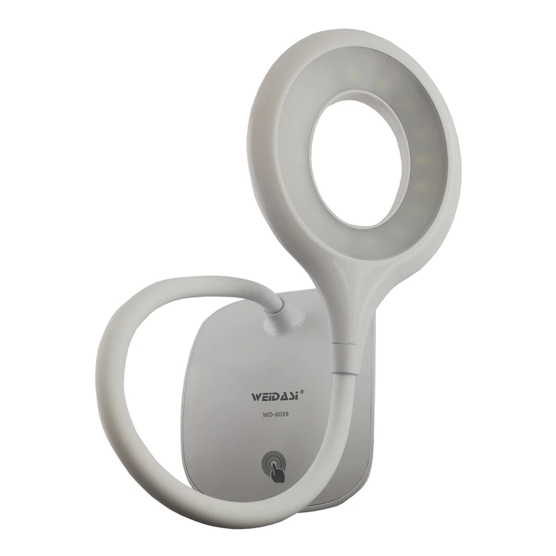 این محصول یکی از جدیدترین تولیدات کمپانی ویداسی (WEDASI) است. این چراغ مطالعه دارای بدنه ی قابل انعطاف می باشد و می توان به راحتی آن را خم کرد و در مکان مورد نظر قرار داد. لامپ آن از نوع SMD می باشد (16 عدد SMD) و دارای نوردهی مطلوب، مصرف پایین و عمر بالا می باشد. یک باطری قابل شاژ در داخل پایه چراغ قرار دارد که شما را از برق مستقیم شهر بی نیاز می کند. و در مواقعی که برق قطع است شما می توانید به راحتی به مطالعه و انجام کارهای خود ادامه دهید. این چراغ مطالعه دارای یک دکمه لمسی می باشد که توسط آن می توان نور لامپ را به میزان دلخواه تنظیم کرد به این صورت که با لمس این دکمه و نگه داشتن انگشت روی آن نور لامپ کاهش یافته و با لمس مجدد آن نور لامپ افزایش می یابد (دیمر لمسی). از مزیت این چراغ مطالعه علاوه بر کم مصرف بودن آن، طراحی زیبا و وزن کم آن می باشد. که به راحتی می توان آن را با خود حمل کرد.